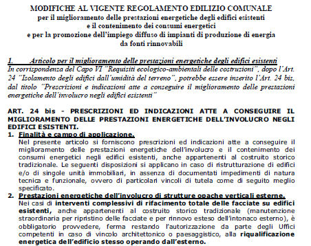 - Adeguamenti e integrazioni ai Regolamenti Edilizi Comunali in funzione del miglioramento delle prestazioni energetiche.